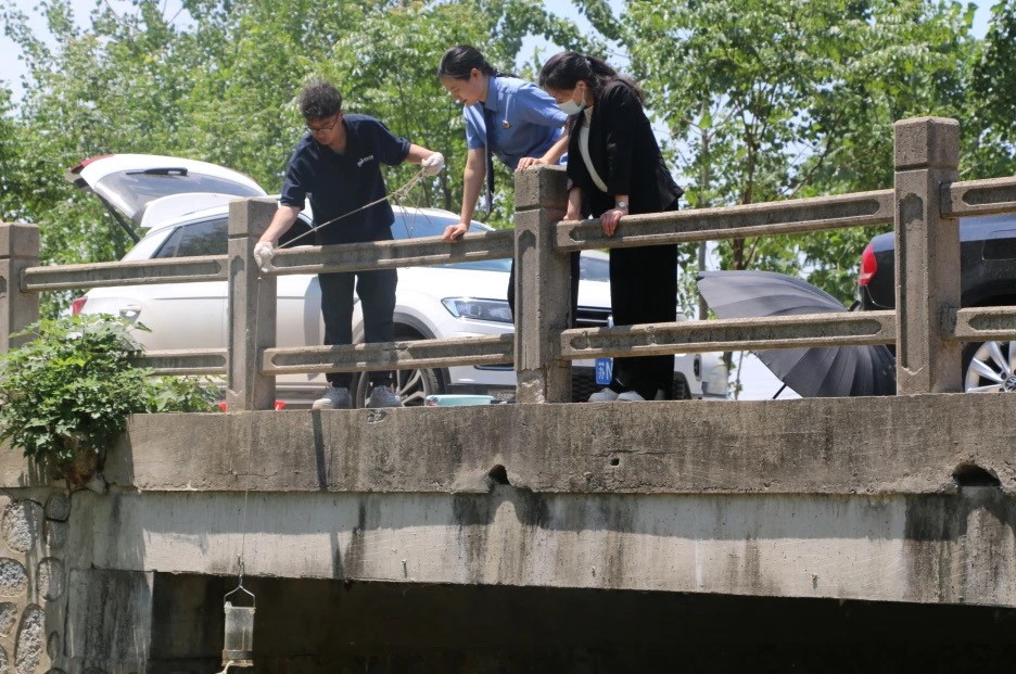 睢宁县检察院公益诉讼团队利用快检设备对饮用水源地水质进行检测