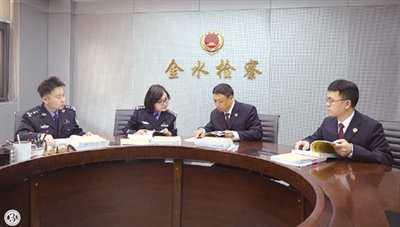 图②:2024年11月13日,办案检察官与侦查人员就如何补强证据进行分析研判。