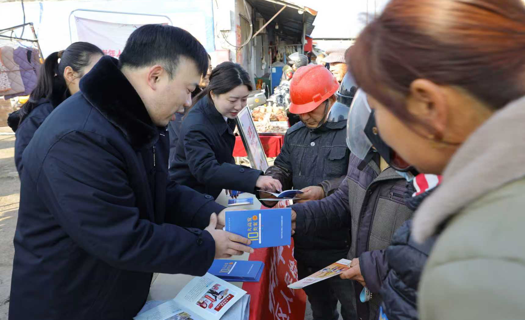 近日,江苏省淮安市清江浦区检察院检察干警走进武墩乡镇集市,以“流动宣讲+现场答疑”等方式开展接地气的普法宣传活动,为赶大集的群众送上“反诈知识年货”。