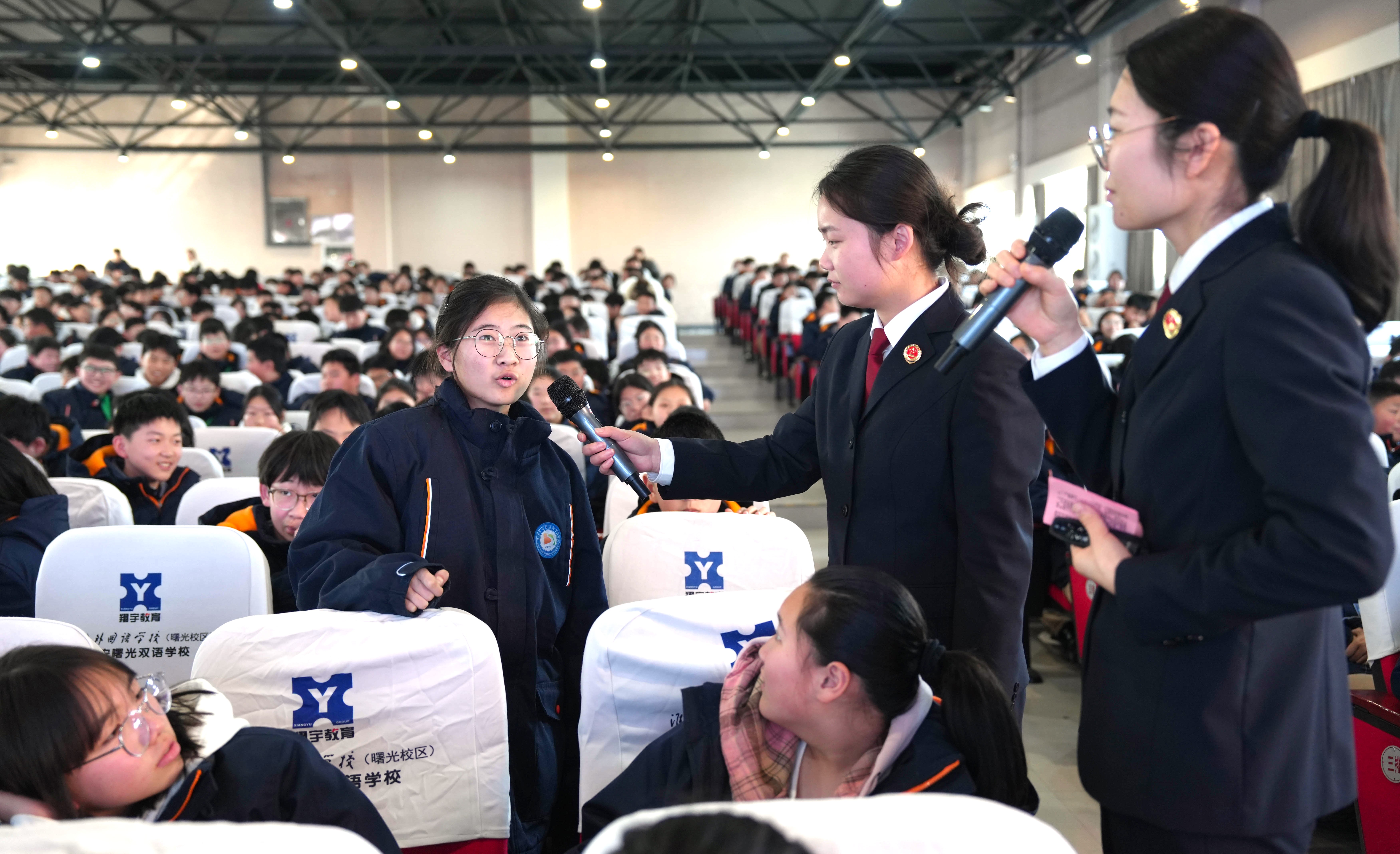 近日,江苏省淮安市淮安区“法治心安·青春期安全法治教育”活动启动。活动中,淮安区检察院将组织法治副校长开展以预防青春期违法犯罪为主要内容的课程教育,区妇联将组织专业的“女童保护”讲师同步开展以生理健康、心理调适为主要内容的课程教育。2026年7月前,两个主题的课程将实现全区24所中学全覆盖。图为启动仪式结束后,淮安区检察院未检检察官围绕如何处理青春期异性同学关系、如何避免冲动型违法犯罪等话题与某学校同学进行交流。