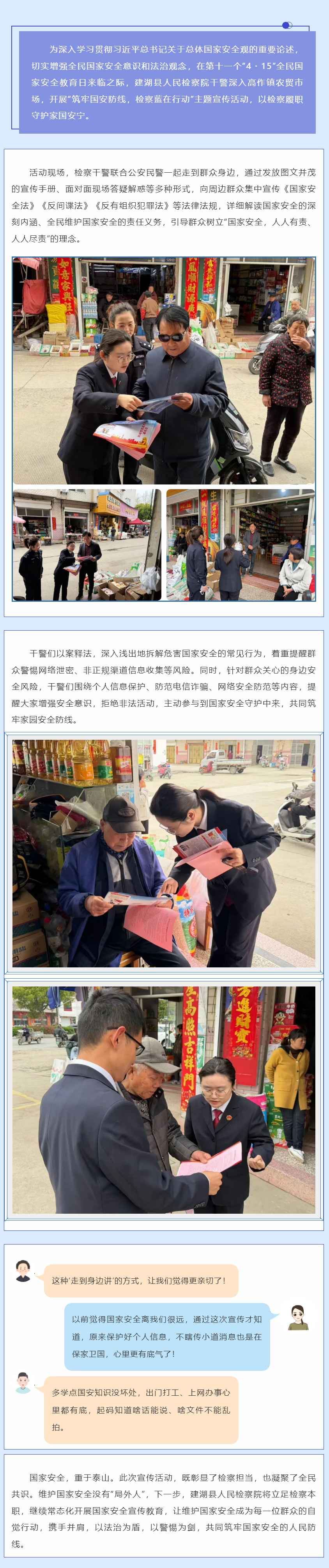 筑牢国安防线 建湖检察“赶大集”送法进村