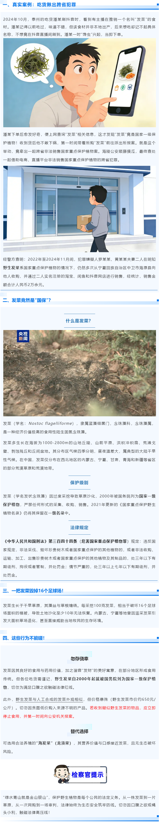 发菜竟是“国家一级保护植物”?泰州市海陵区检察官:珍惜生态,拒绝野味