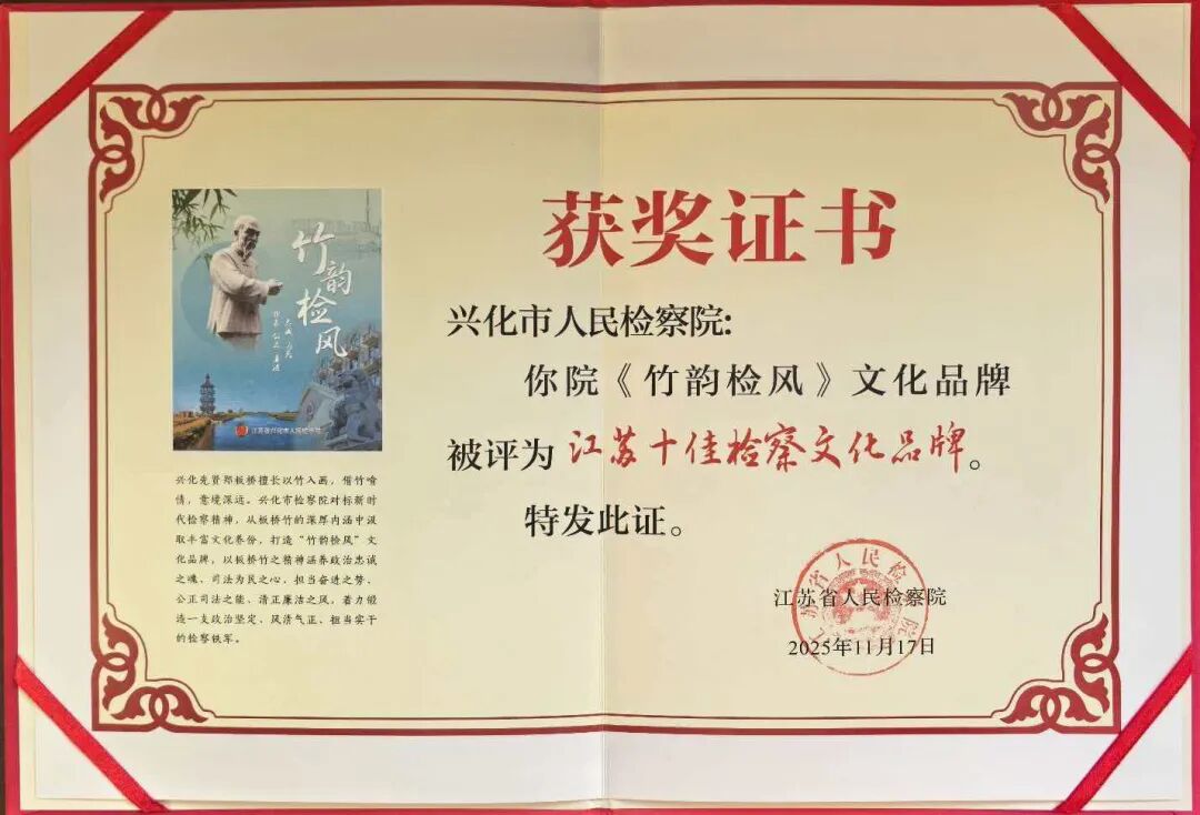 文化是一个国家、一个民族的灵魂。江苏省兴化市检察院深耕文化阵地建设,打造由品牌建设、普法矩阵、书香润检相结合的文化阵地体系,通过多元文化载体的协同发力,构建起具有地域特色与检察特质的文化生态,为检察工作高质量发展注入深厚文化动能。“竹韵检风”文化品牌获评全省“十佳检察文化品牌”。
