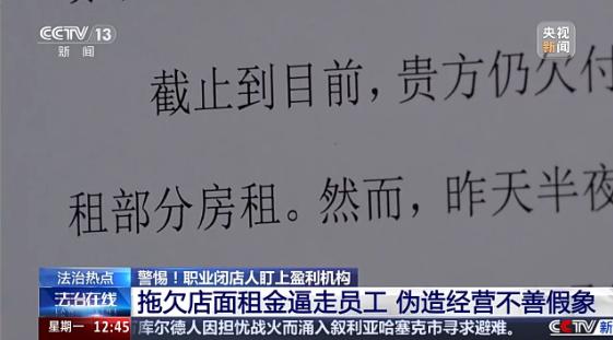 拖欠店面租金逼走员工
