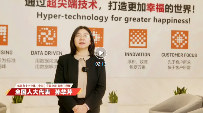 全国两会召开期间全国人大代表SK海力士半导体(中国)有限公司高级工程师 孙华芹接受采访讲述她眼中的“检护未来”