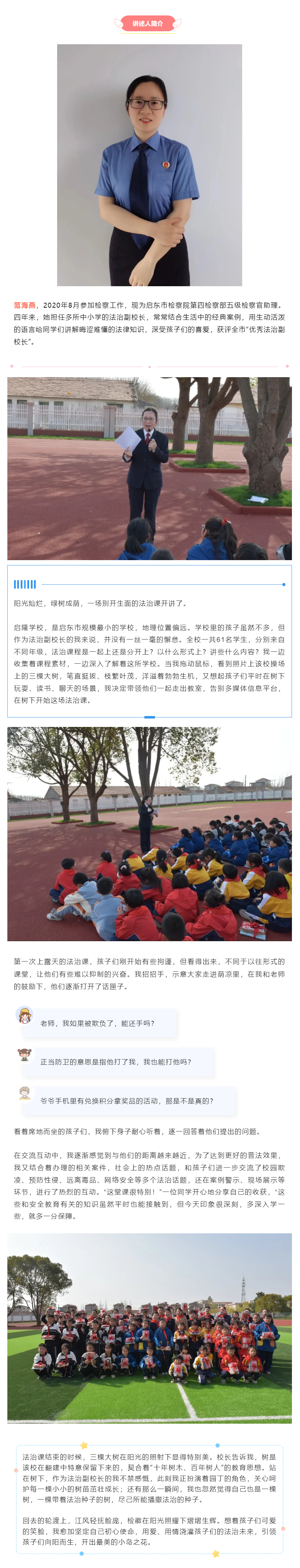 “孩子在哪里,我的法治课就到哪里” 启东市检察院大树下开展法治课