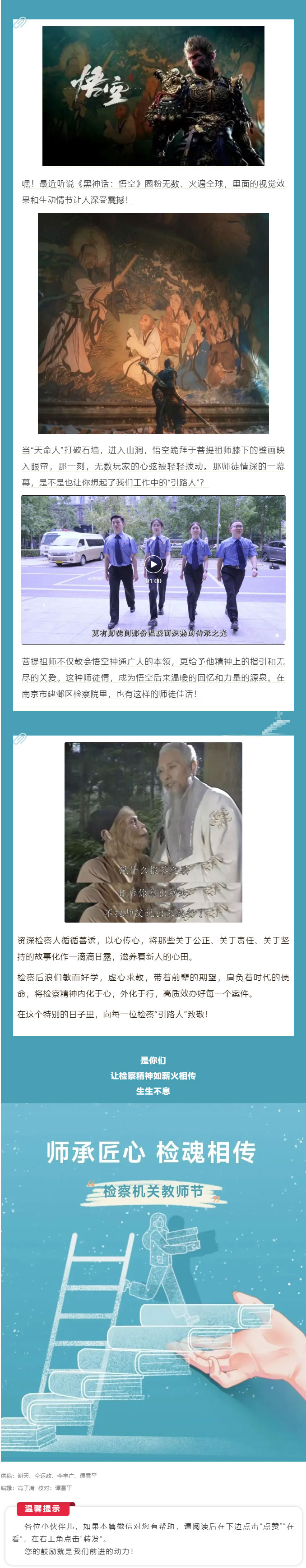 南京市建邺区检察院:感悟《黑神话·悟空》师徒关系,传承检察薪火