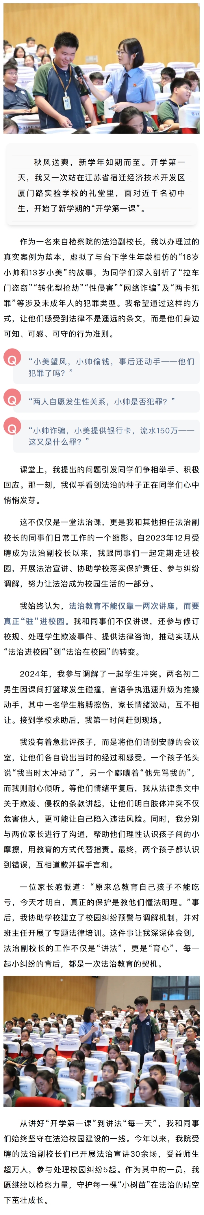 宿迁检察法治副校长讲述心得:让“法治进校园”变成“法治在校园”