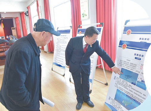 检察官对接沿海地区各乡镇政府,决定在吕四港镇东皇山村设立启东市首个非法捕捞公开听证示范点。针对涉案价值较小、公益损害程度轻、当事人自愿缴纳生态损害修复费用的非法捕捞案件,由检察机关集中组织在示范点进行公开听证及现场训诫。