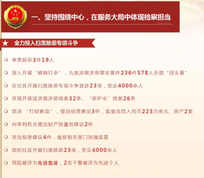 对每个案件必问“是否存在保护伞、是否检举揭发涉黑涉恶犯罪线索”,向纪委监委、公安机关等移送保护伞线索979件。镇江丹阳市检察院在办理王水军涉黑案中挖出4条保护伞线索,并对其中2名徇私枉法的司法工作人员直接立案侦查。