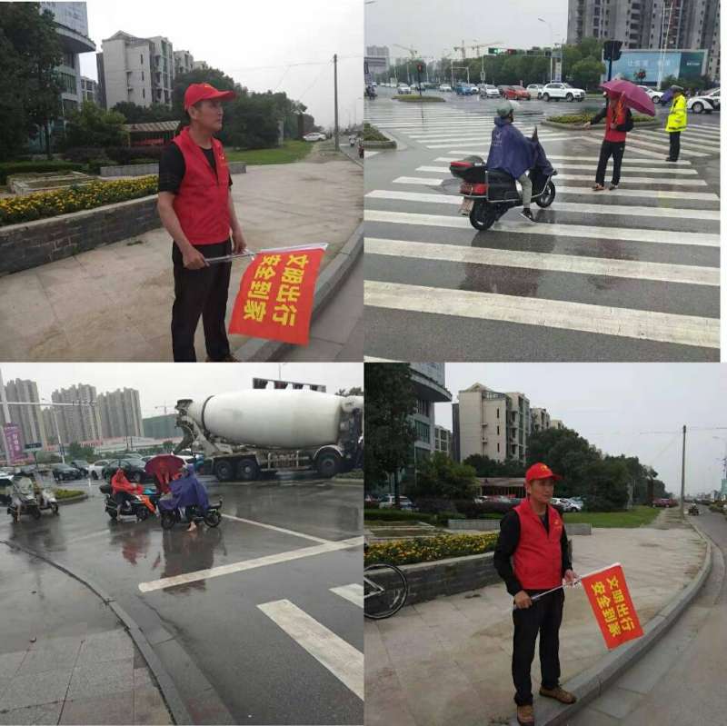 自7月1日起,江苏省苏州市吴江区检察院第一检察部、第六检察部多名同志组成文明志愿者服务队,参加“我为城市添光彩”新时代文明实践志愿服务行动。他们身穿红马甲、头戴小红帽、手举小红旗站在指定路口疏导交通,劝阻不文明交通行为。