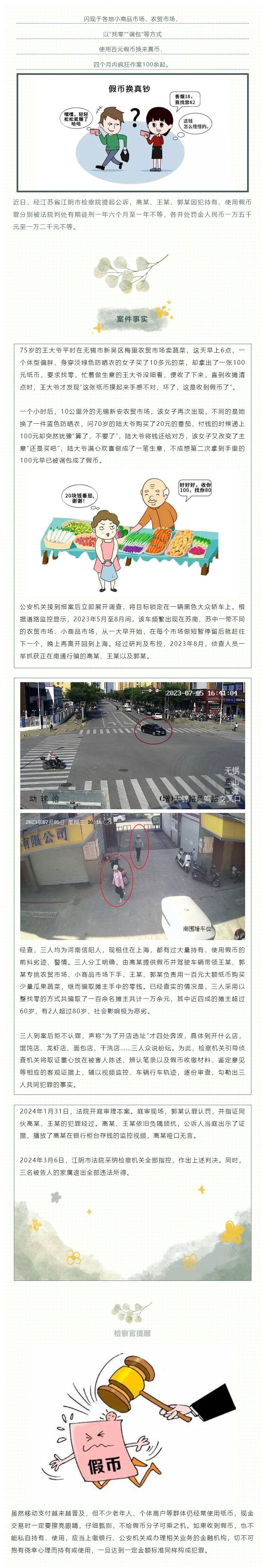 连续行骗100余次 一“百元假币找零”团伙被江阴市检察院提起公诉