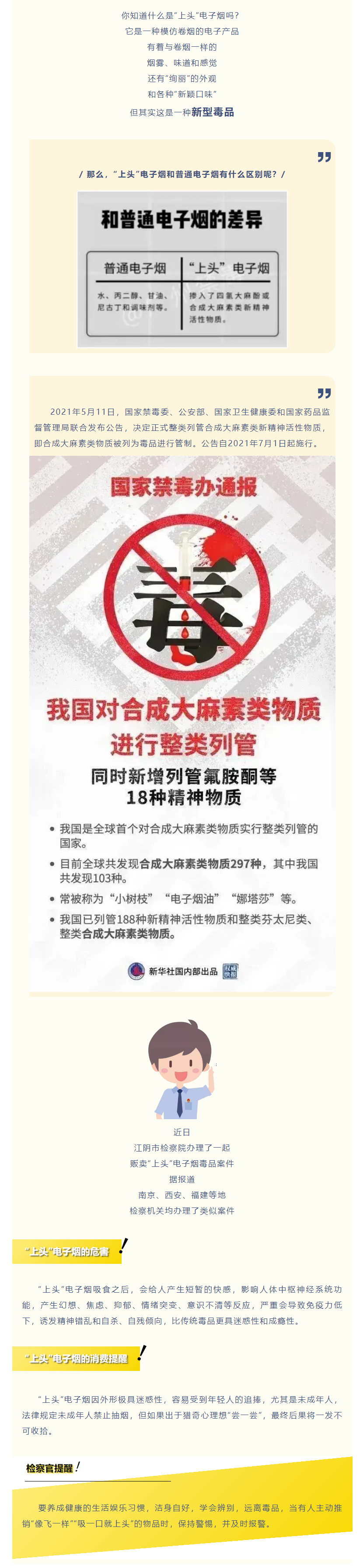电子烟抽一口就“上头” 江阴市检察院提醒您:小心!新型毒品!