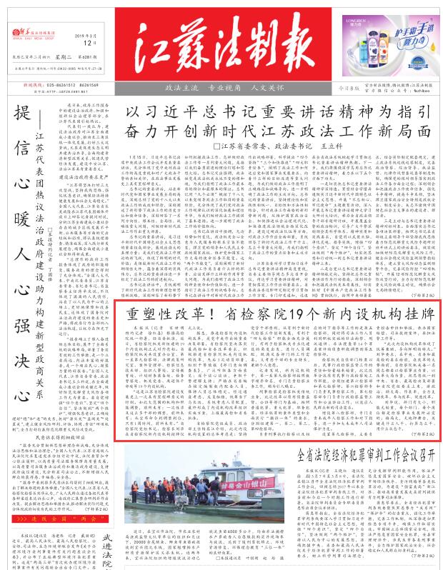 江苏法制报:重塑性改革!省检察院19个新内设机构挂牌
