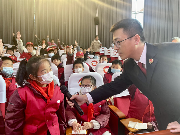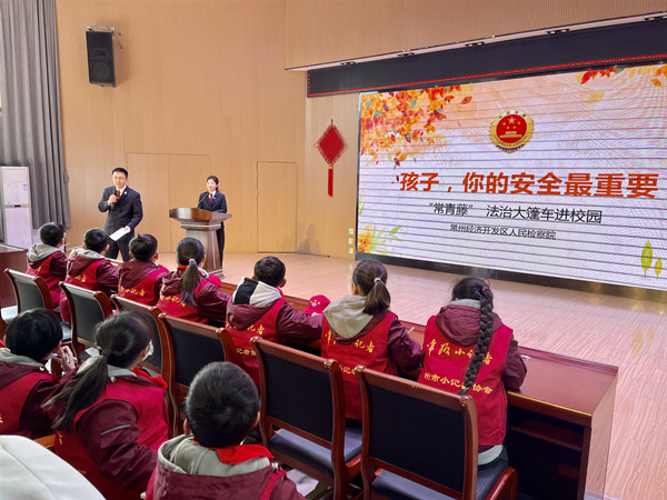 近日,“常青藤”法治大篷车进校园系列活动走进遥观中心小学,江苏省常州经开区检察院干警陈文超、龚先雨为该校140多名学生带去了一场安全主题法治活动。