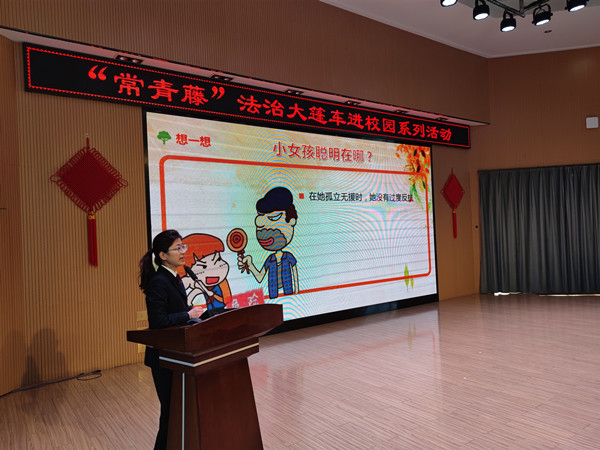 活动中,干警以《孩子,你的安全最重要》为主题,结合案事例,就如何防范和应对儿童拐骗、远离校园欺凌、防范性侵及寒假假期安全等方面进行宣讲,让学生们认识到自我保护的重要性和方式方法,鼓励大家学法懂法用法,运用法律武器筑牢“安全墙”。