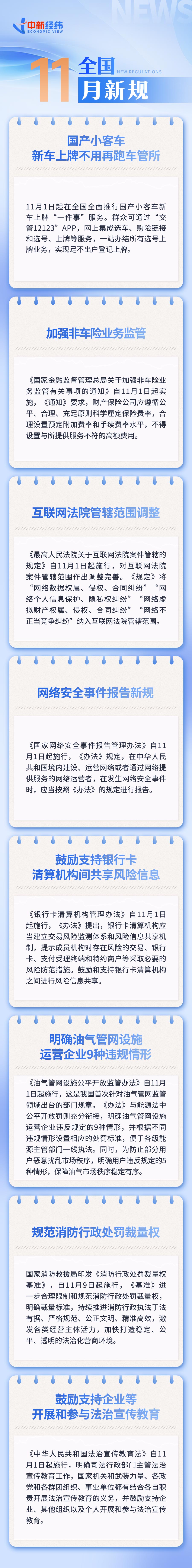 国产小客车新车上牌不用再跑车管所、互联网法院管辖范围调整、海南离岛旅客免税购物政策调整……2025年11月,一大波新规将施行,哪一项与你有关?