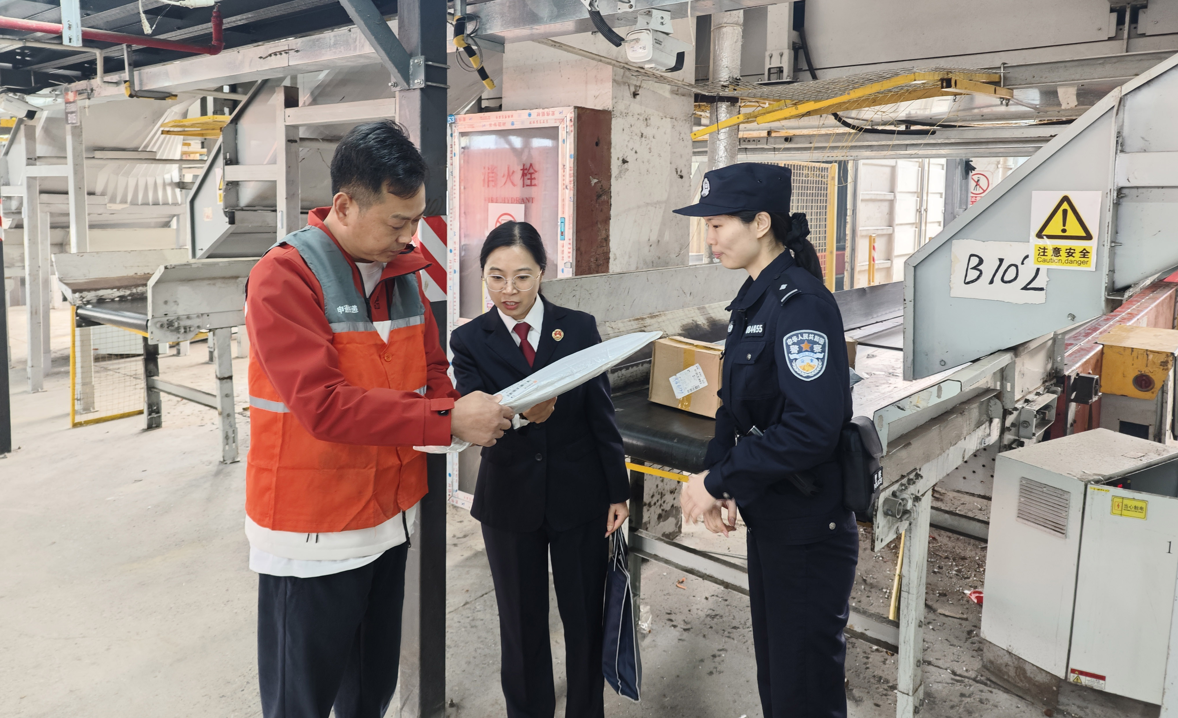 11月14日,江苏省淮安市淮安区检察院联合公安、邮政管理部门对物流园快递面单隐私化处理、信息录入管理等情况进行常规检查,并向物流管理人员普及相关法律知识,共同守护千家万户的寄递安全。 通讯员 李丹丹 赵锐 摄
