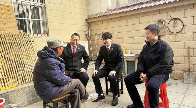 春节前夕,江苏省镇江市丹徒区检察院“检与同行”法律服务队开展“寒冬送温暖·守护中国年”法治暖冬行动,通过案件回访、法律服务、建议征集等,解决群众急难愁盼问题。图为民事行政部门检察官对一起讨薪案件进行回访。