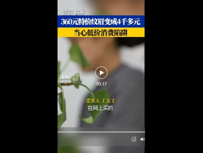 爱美之心,人皆有之。如今,女士纹眉越来越常见。最近几年,各个网络平台不断推送的一些低价纹眉,让人不免动心。扬州的王女士就因为看到网上的360元特价纹眉套餐,掉进了一个“美丽陷阱”。