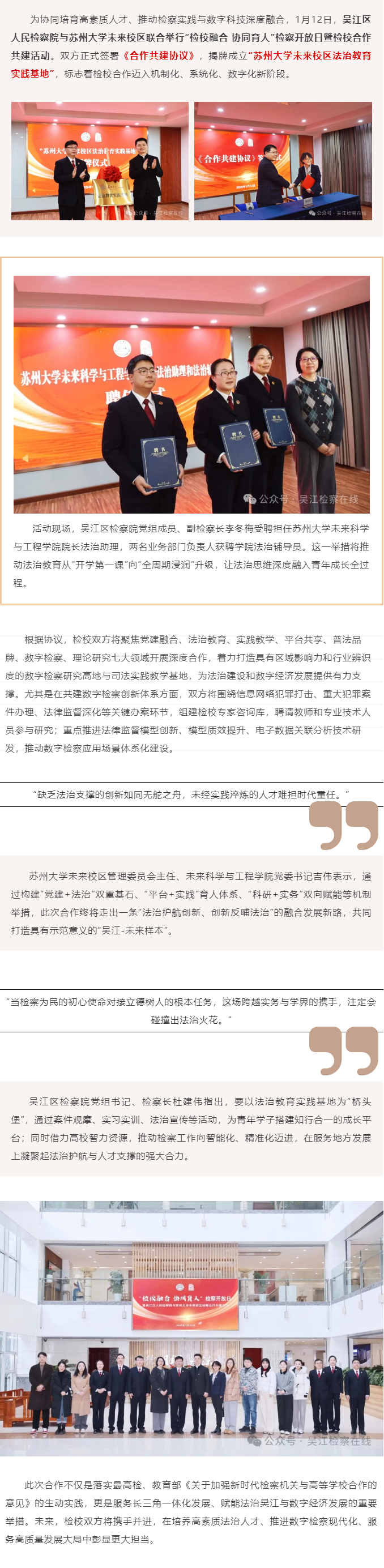 检校融合 苏州市吴江区检察院与苏州大学未来校区共建法治教育实践基地