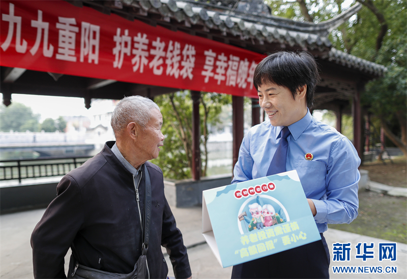 日前,江苏省兴化市人民检察院开展“迎九九重阳 护养老钱袋 享幸福晚年”主题活动,通过发放宣传资料、讲解真实案例等方式,向老年人普及防诈骗知识,提醒他们提高警惕,守护好自己的“钱袋子”。