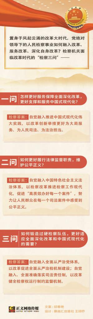 ◆检察答案:自觉融入推进中国式现代化伟大实践,以改革创新举措更好为大局服务、为人民司法、为法治担当。