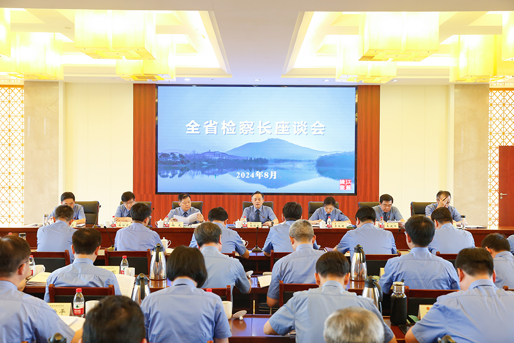 8月8日下午至9日上午,全省检察长座谈会在省检察官学院召开。会议坚持以习近平新时代中国特色社会主义思想为指导,深入践行习近平法治思想,专题学习贯彻党的二十届三中全会精神,认真落实大检察官研讨班部署,总结上半年全省检察工作,研究部署下半年重点任务,动员全省检察机关和全体干警以“走在前、做示范”的使命担当,进一步全面深化检察改革、加快推进江苏检察工作现代化,更好支撑和服务中国式现代化江苏新实践。省检察院党组书记、检察长石时态在会上专题宣讲党的二十届三中全会精神,并对贯彻落实三中全会精神、大检察官研讨班精神,进一步做好下半年全省检察工作作出部署。省检察院党组副书记、副检察长李爱君主持会议并作总结讲话。