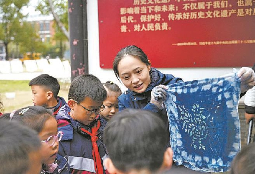 学手工艺很苦、很累、很枯燥,但吴灵姝一路坚持了下来。这些年,她把蓝印花布技艺带入高等院校、中小学、幼儿园,开展非遗传承实践教学活动。