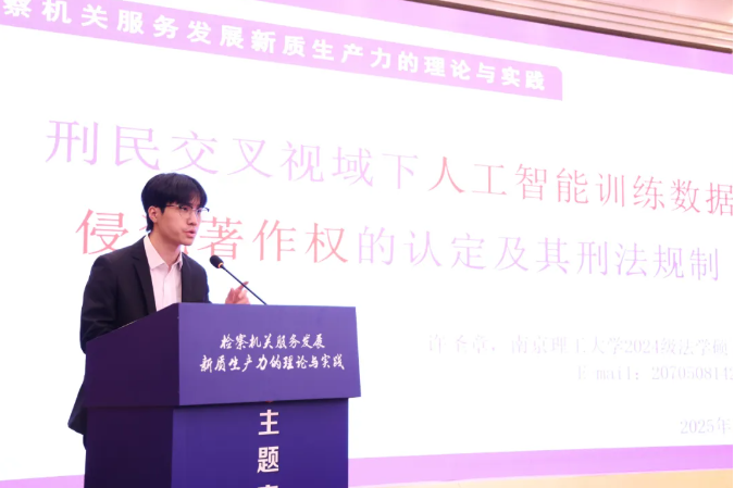 来自上海、河北、广西、四川等地的优秀论文作者代表,分别围绕“检察机关服务新质生产力发展的基本路径”与“服务保障新质生产力发展的司法难点”两个专题,聚焦知识产权检察保护、新领域检察保护、新类型司法实务等议题进行交流发言。国家检察官学院刑事检察教研部主任、教授郭欣阳,苏州大学王健法学院副院长、教授庄绪龙分别进行了点评。