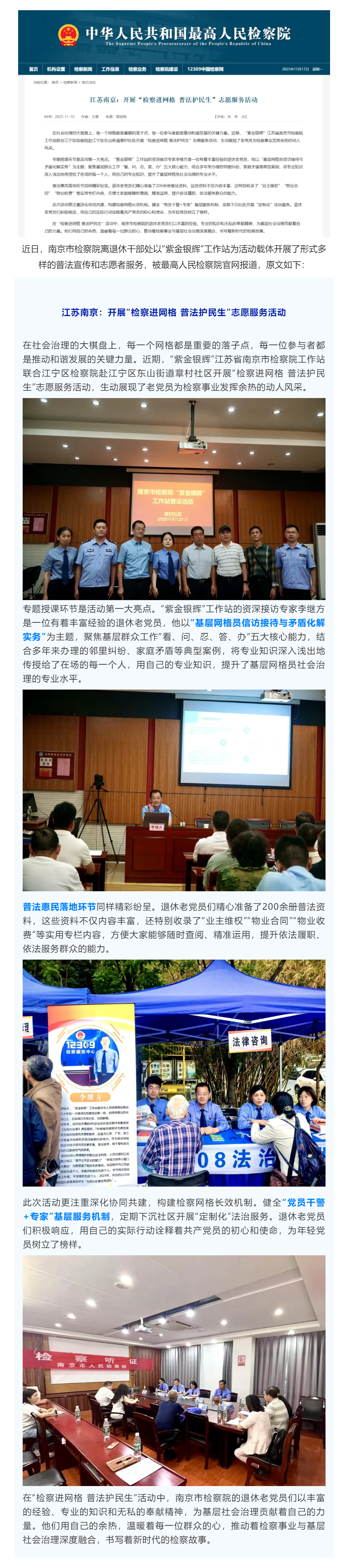 南京市检察院开展“检察进网格 普法护民生”志愿服务活动