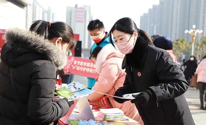 江苏省海安市检察院检察官们走进该市星湖001商业广场,给群众送上一份份法治“大礼包”,这份“大礼包”里有未成年人保护法宣传册、养老防诈指南、家庭教育指导法口袋书等。活动现场,检察官们热心为过往群众解答法律问题,进行普法宣传。 陆吟秋 顾琳琳 摄