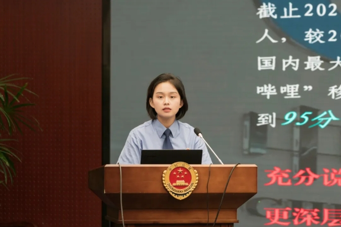 “思想、文化不分家,想要检察文化大放异彩,就要自觉运用新时代法治思想武装头脑”,为此她主动当好“排头兵”,努力先学一步、深学一层、多悟一分。担任了7年讲解员的她将习近平法治思想、习近平文化思想与检察业务工作、检察文化建设相融合,推动党的法治思想、法治精神深入人心,也陆续带出4名新干警担任讲解员,形成如东检察工作讲解矩阵。