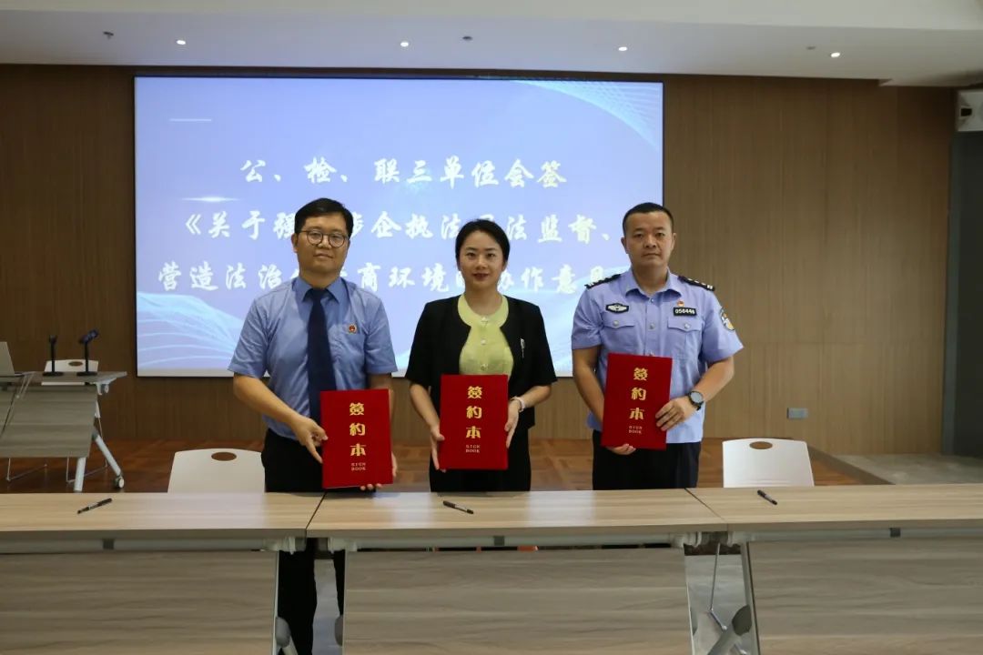会议中,经开区工商联副主席周明珠,经开区检察院党组成员、副检察长杨剑,经开区公安分局副政委、政治处主任邹文武共同签署了《关于强化涉企执法司法监督、营造法治化营商环境的协作意见》,针对违规异地执法和趋利性执法司法等问题,凝聚企业权益保护合力。