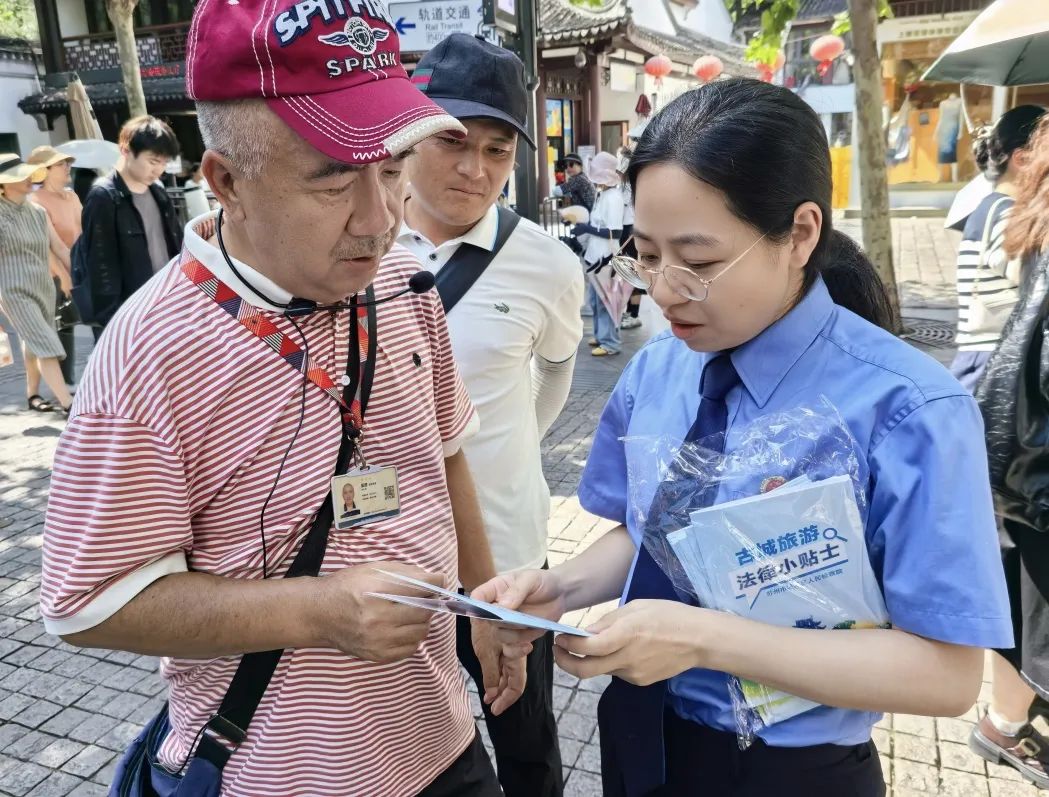 座谈会后,姑苏区检察院的检察干警走进平江路、拙政园等热门景点附近,通过发放普法宣传手册,用通俗易懂的语言,结合旅游消费纠纷、文物保护、信息保护等旅游中常见的案例,为游客深入浅出地讲解相关法律条文,引导游客在旅途中形成自觉守法、遇事找法、解决问题靠法的意识,加深社会各界对检察工作的了解和关注。