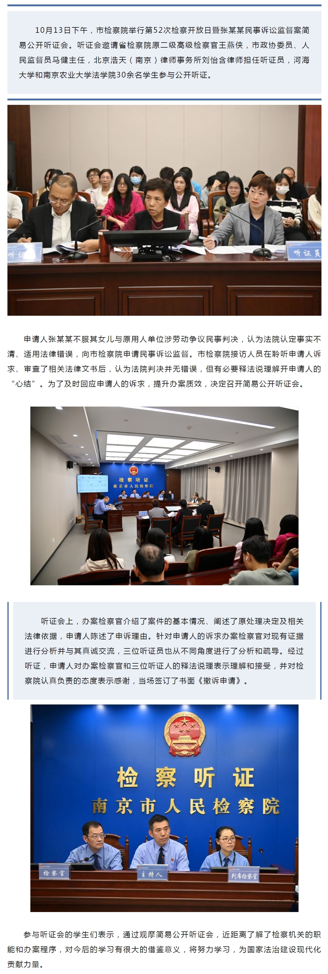 30余名大学生走进南京市检察院参与公开听证