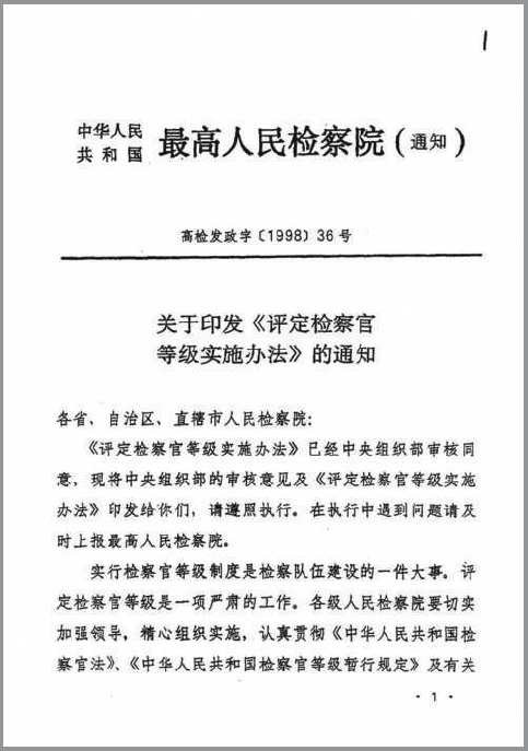 最高人民检察院《关于印发〈评定检察官等级实施办法〉的通知》(档案类型:文书档案;保存地:最高检档案馆)