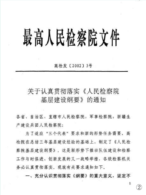 图②:最高人民检察院《关于认真贯彻落实〈人民检察院基层建设纲要〉的通知》(档案类型:文书档案;保存地:最高检档案馆)