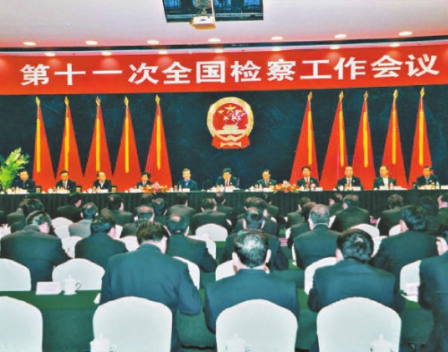 2003年1月4日至6日,第十一次全国检察工作会议在北京召开。时任最高人民检察院检察长韩杼滨作了题为《认真贯彻党的十六大精神,开创中国特色社会主义检察事业新局面》的工作报告。会议深入学习贯彻党的十六大精神,总结了过去五年检察工作及其基本经验,明确了新世纪新阶段检察工作的形势、任务和发展目标,对全面强化法律监督职能、深入推进检察改革、加强检察队伍的专业化建设和基层检察院正规化建设等作出全面部署。这次会议对于在新世纪振兴检察事业、推进依法治国、为全面建设小康社会提供有力检察保障具有重要意义。