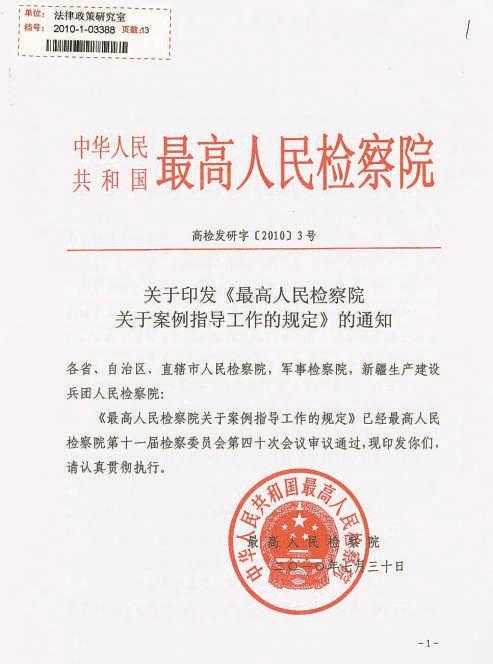 2010年7月,最高人民检察院印发关于案例指导工作的规定,建立案例指导制度,通过选编、发布检察机关办理的在认定事实、证据采信、适用法律和规范裁量权等方面具有普遍指导意义的案例,为全国检察机关依法办理案件提供指导和参考,规范检察官司法办案行为,促进正确行使自由裁量权,确保法律统一正确实施。同年12月31日,最高人民检察院发布第一批指导性案例,分别是施某等17人聚众斗殴不诉案、忻元龙绑架抗诉案和林志斌徇私舞弊暂予监外执行自侦案等三个案例。建立指导性案例制度,既加强了检察办案指导,又引领社会法治意识,通过法律监督促进诉源治理。