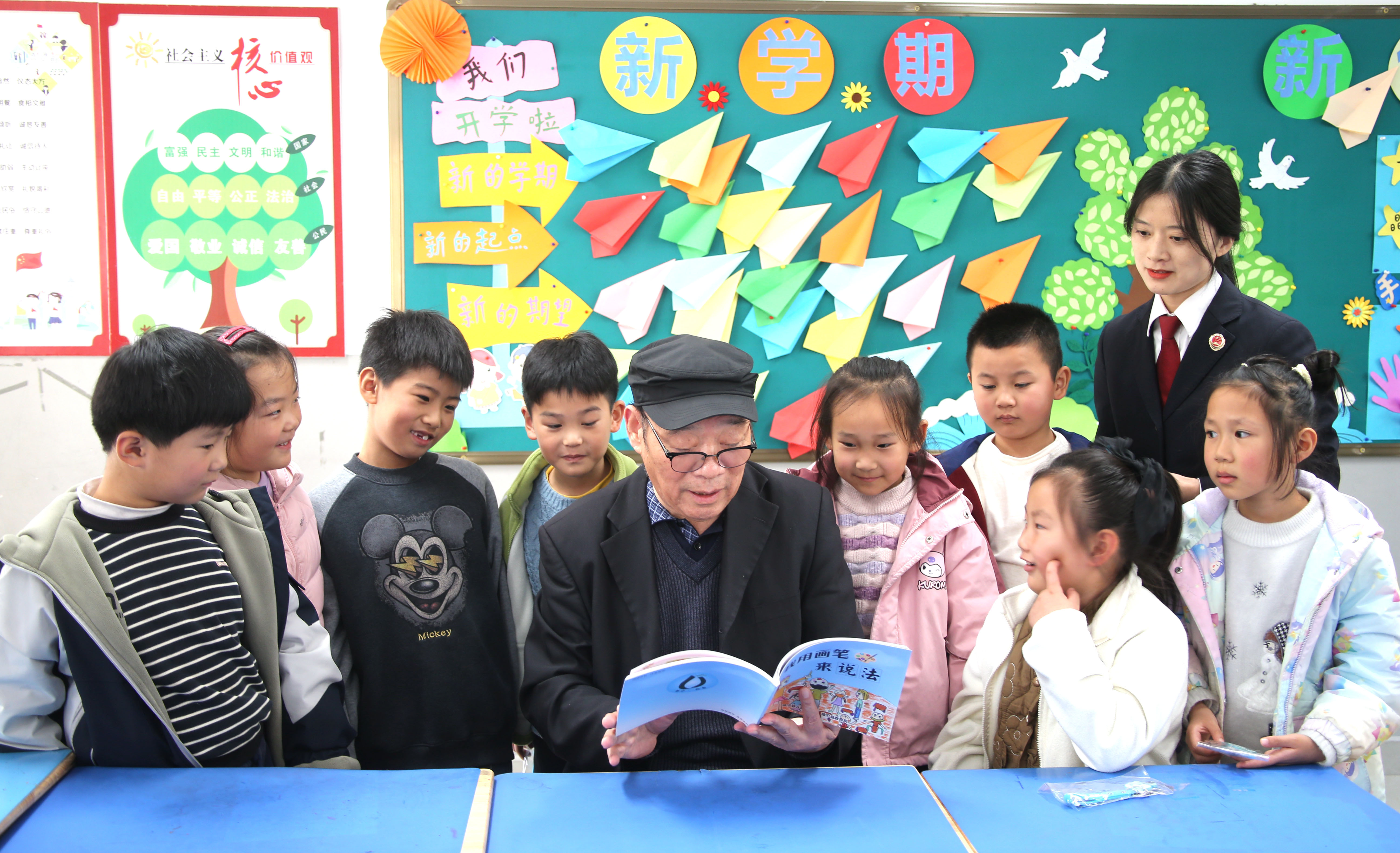 近日,江苏省睢宁县检察院退休老党员郭克强和未成年人检察干警一起赴新城区第二小学开展“银发力量”护“未”成长——普法宣传进校园活动,针对小学生的心理特点,将自我保护、交通安全、校园安全等内容寓于案例故事之中,让法治的种子在孩子们心中茁壮成长。