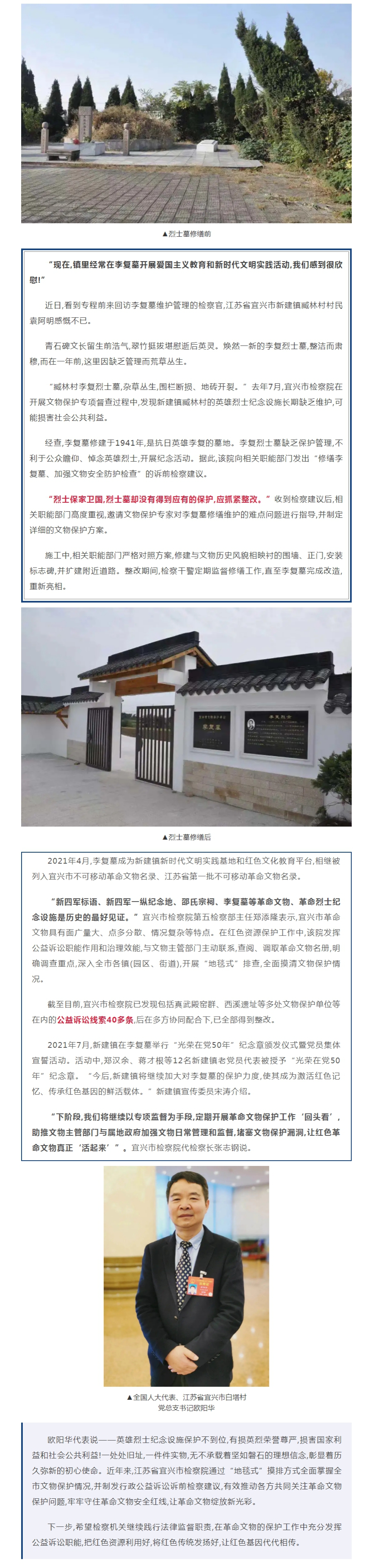 “烈士墓修缮好了我们感到很欣慰!”宜兴市检察院开展红色革命文物保护专项督查