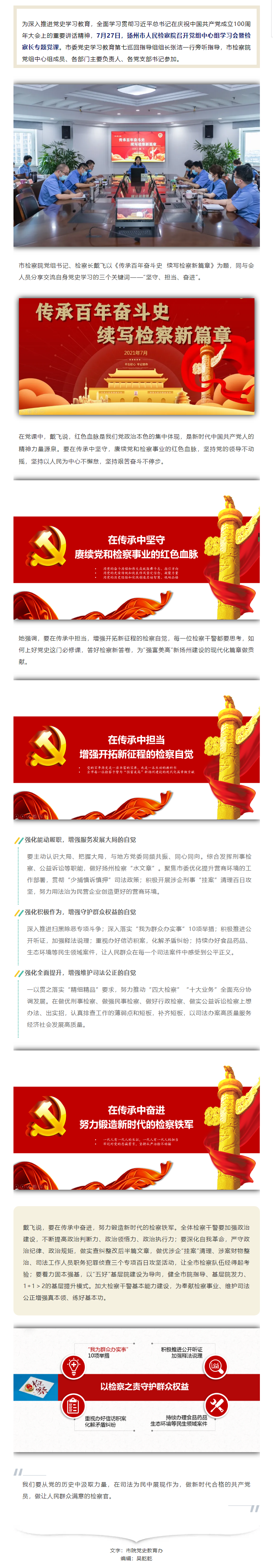扬州检察长上党课:传承发扬人民检察与生俱来的“红色基因”
