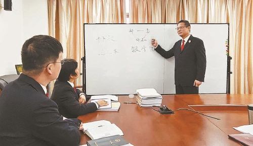 2025年3月,兴化市检察院召开检察官联席会议。图为案件承办人分析讨论是否退回补充侦查。赵苗摄