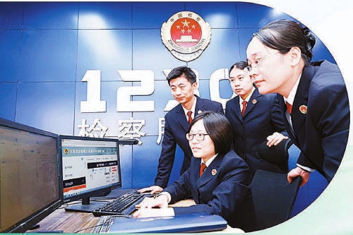 图为江苏省新沂市检察院评查专班通过案件管理系统对“案件质量评查清单”中的重点案件进行核查。