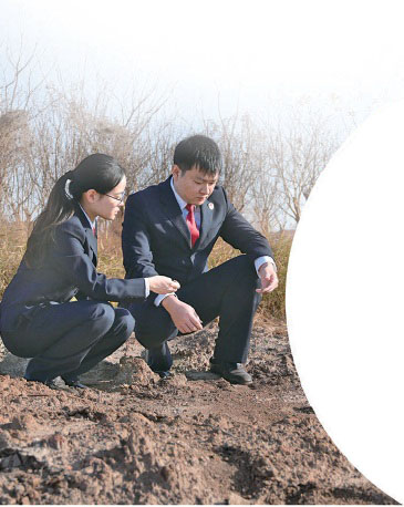 图②:12月9日,江苏省启东市检察院检察官对一起跨区域倾倒印染污泥案件后续整改情况进行“回头看”。