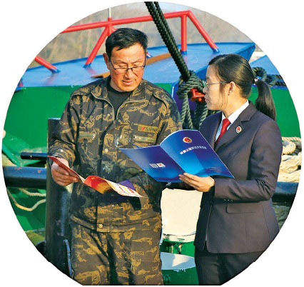 图③:12月16日,江苏省海安市检察院检察官在港口向渔民开展法治宣传。