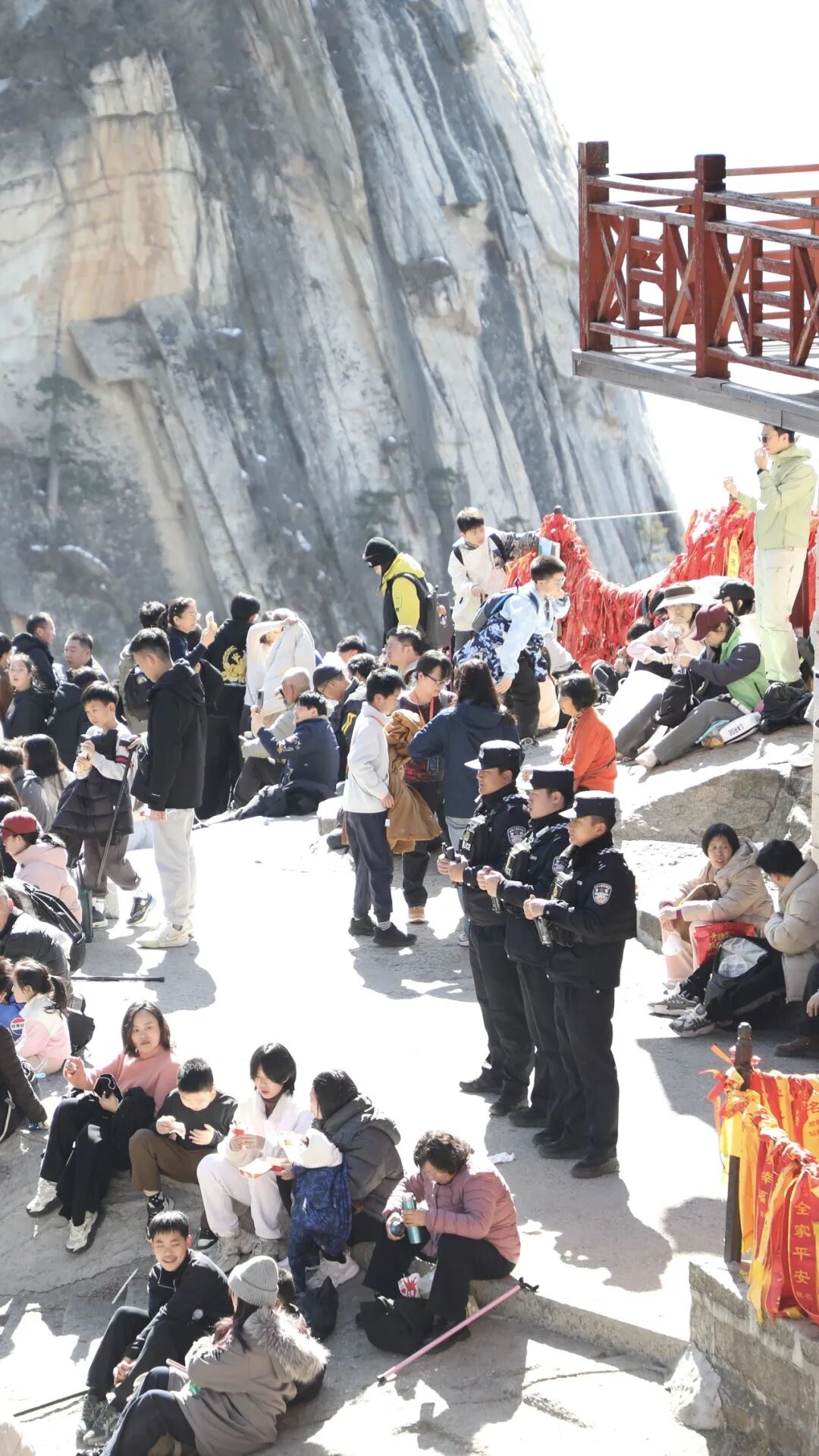 陕西渭南民警在华山景区巡逻,保障游客安全游览。