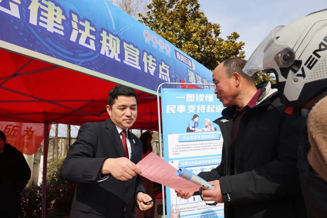 春风送岗又送法。2月19日至21日,正值农历大年初三至初五,在江苏省泗洪县“春风行动”招聘会上,泗洪县检察院将普法摊位摆到了招聘会现场,检察官们带着 “新春法治礼包”,把法律服务送到了务工群众和企业 “家门口”。
