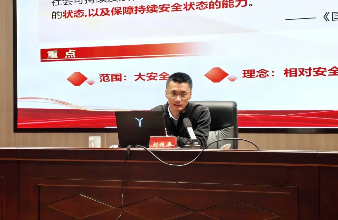 讲座中,刘传平讲师紧扣总体国家安全观核心要义,围绕 “国家安全是民族复兴的根基”“统筹发展与安全” “推进国家安全体系和能力现代化”等关键问题,系统阐释了 “五大要素”“十个坚持”“五个统筹” 等核心内容,深入解读当前国家安全形势与风险挑战,将历史维度、理论维度与实践维度有机结合,为全体干警上了一堂主题鲜明、内涵深刻、务实管用的政治课、理论课、实践课。